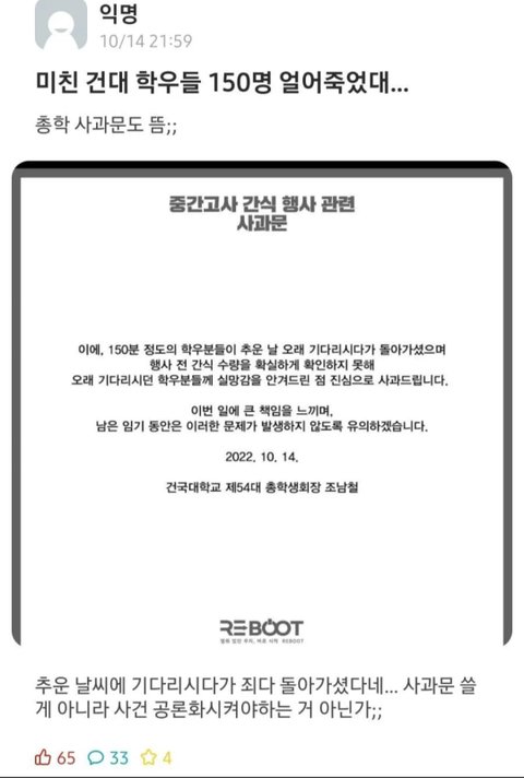 건국대 학생들 150명 돌아가셨대...