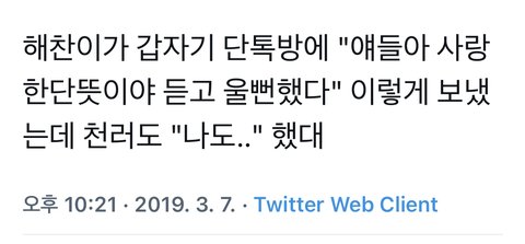 이번 윈터팬미팅 한다면 거기서 불러줘서 애들에게도 애틋한 추억이 아닌 좋은 추억이 담긴 노래로 다가왔으면 좋겠다