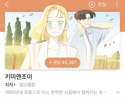 키미앤조이!! 보는 사람 많지 않은 것 같은데 옛날 프랑스 어떤 포도농장에서 일어나는 사랑이야기야 색감만 봐도 알겠지만 너무 힐링되는 웹툰이야ㅜㅜ 그리고 살짝쿵 살짝쿵 완전 설렌다 인물들도 다 너무 사랑스럽고 호감이어서 더 기분좋게 볼 수 있어