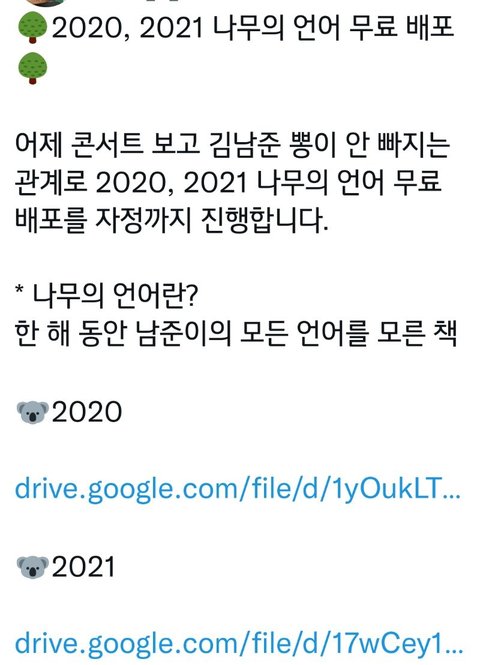 https://twitter.com/Tree_N_Joon/status/1581470958480928768?t=6YV3q-OHYZ-5O5C0k8KVow&s=19 남주니의 인터뷰나, 라이브, 콘멘트 적은 파일이야