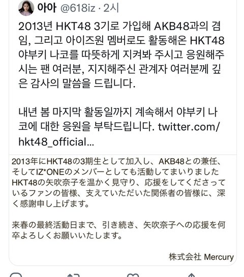 무슨 노선 타려는건진 모르겠는데 이제 일본에서 아이돌 안한다고함 일본에서 배우를 하는건지.. 아니면 한국으로 와서 나코넣은 그룹이 나오는건지.. 궁금하네 근데 나오길 잘한듯.. 저 akb랑 hkt 등등 팬들한텐 미안하지만 너무 넘사벽 오타쿠 체제임...