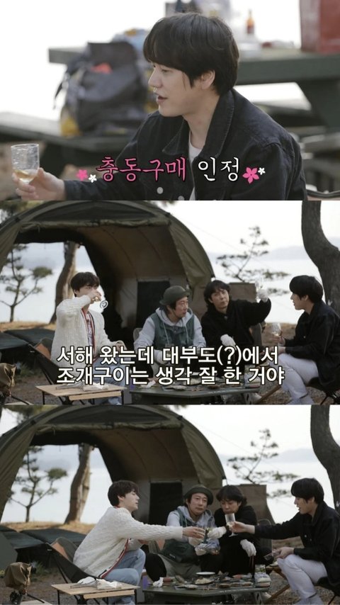 캠핑장에 온 J는 P가 준비해온 화이트와인을 보다가
