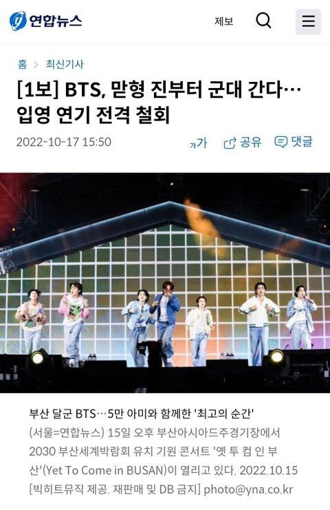 그리고 마지막까지 방탄 언플질 참 대단함.. 엄청 연기 줄인거 마냥 얘기하네?ㅋㅋㅋ원래 올해 12월까지 안가면 끌려갈걸 버티다가 안되니까 10월말로 줄였다고 언플을 하는거보면