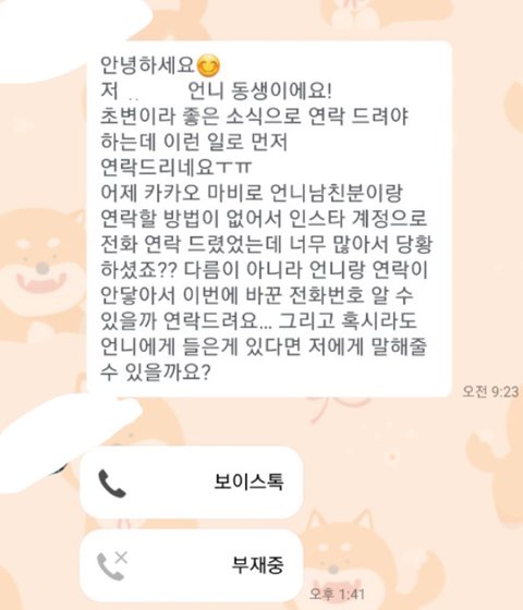 카톡 사진은 남자친구 폰으로 카톡 온 문자 내용이야..