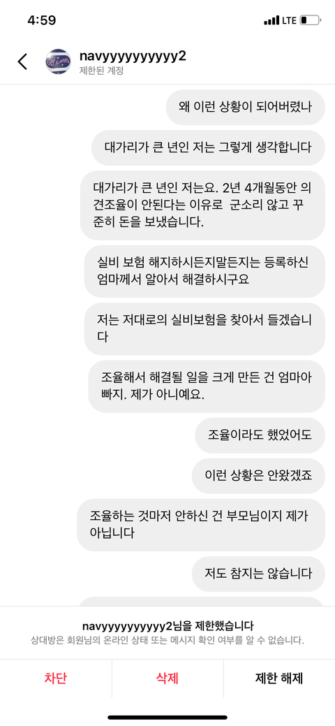 이후에 인스타 앱 삭제하기 전에 차단해놓은 상태야..