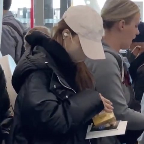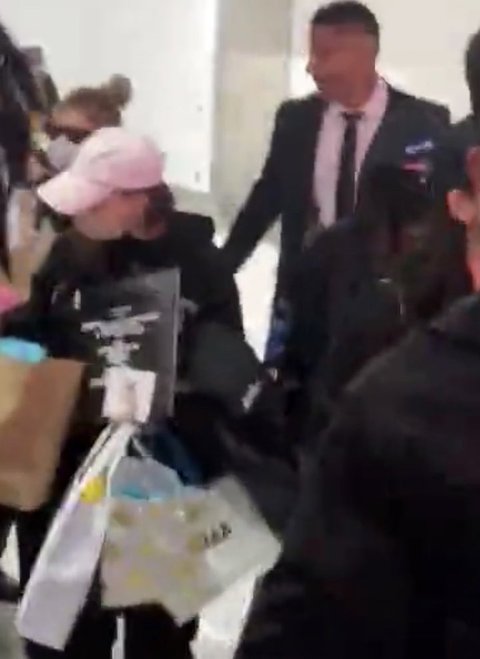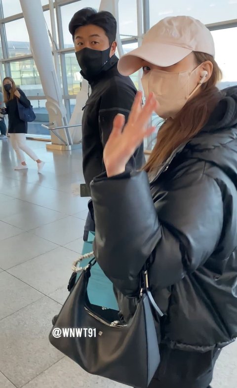비행기 타러 공항 들어오는 모습임 쇼핑백 하나 없이 작은 가방 하나 들고옴