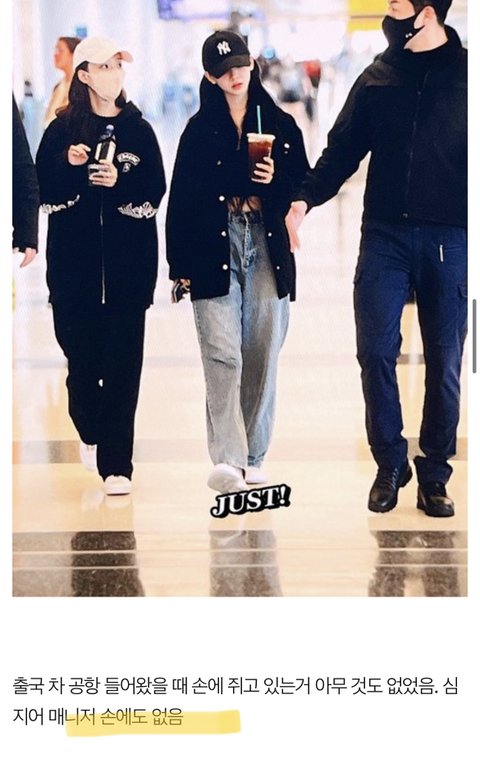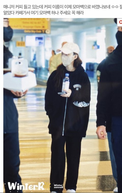 출국전에도 매니저 빈손으로 오고 윈터도 아무것도 안들고 있음