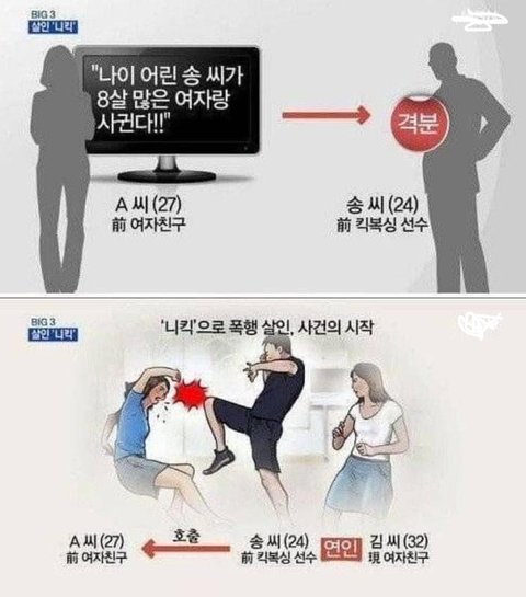 기사 찾아보니까 전여친이랑 사귈때 현여친을 친한 언니라고 소개해주고 셋이서 자주 만남→전여친과 헤어진후 현여친과 사귐→이걸 안 전여친이 험담→ 남자와 현여친이 짜고 전여친을 원룸으로 불러냄→ 현여친이 전여친 뺨 때림→ 전여친이 경찰부르려고 함→ 저 남자가 니킥 폭행. 그리고 전여친 죽을때까지 폭행 함. → 남자 15년, 현여친 3년.
