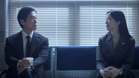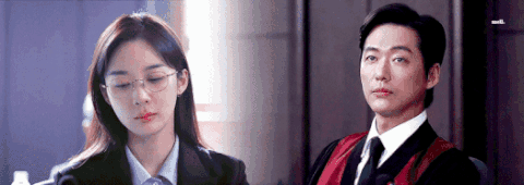 재판 시작 후 아까 그 여자가 상대측 변호사인 것을 알게 된 지훈은 내심 실망함