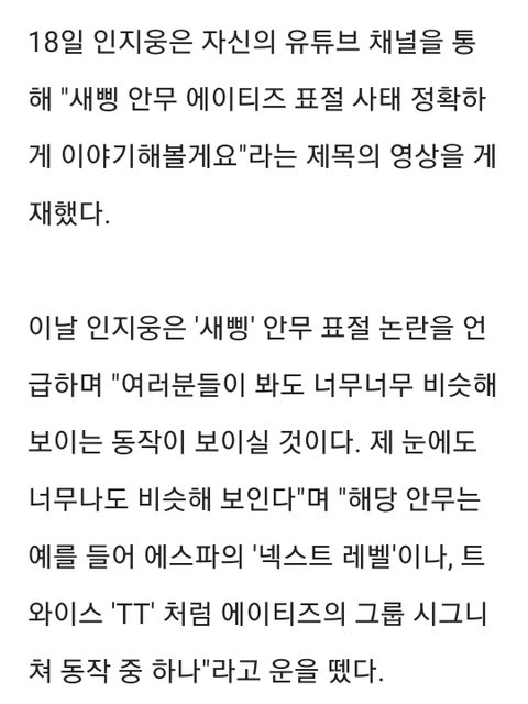 오 마이 갓 바타.. 다른 기사 ~~ "바타, 에이티즈 존중했어야"…댄스 트레이너 인지웅, '새삥' 표절 논란 일침