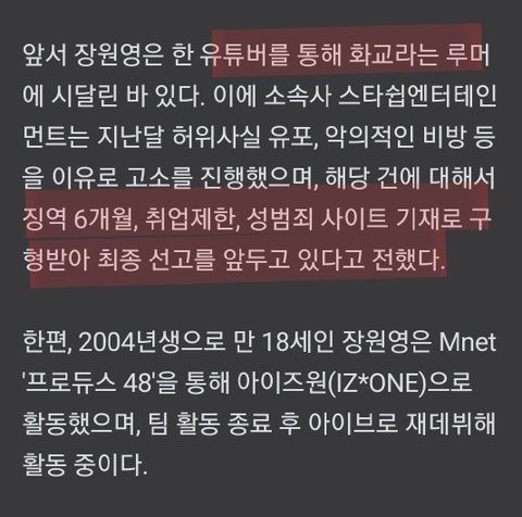 장원영 루머 퍼트려서 유튜버 고소 당함