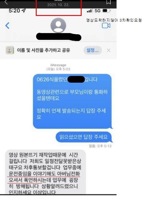 갑자기 영상원본뜨기 재작업을 한다며 차후 통보할거라며 아버님이 폭언을 했다고 함.