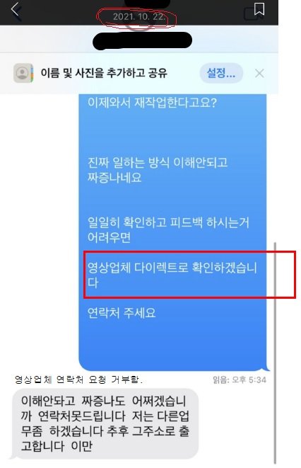 일처리에 불만을 표시하고 영상업체 연락처 요구하니 거절.