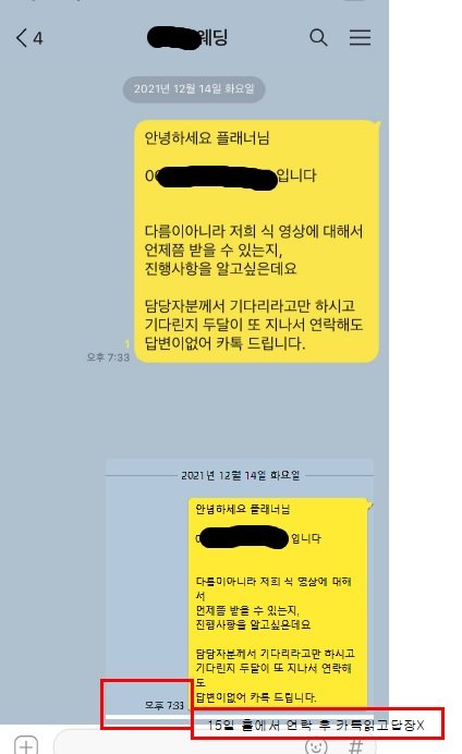 1. 웨딩플래너가 돈 받고 결혼식 영상 1년 넘게 안주고 연락도 안됨