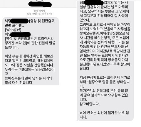 프리랜서 작가가 1월중으로 영상 보낸다는 내용.