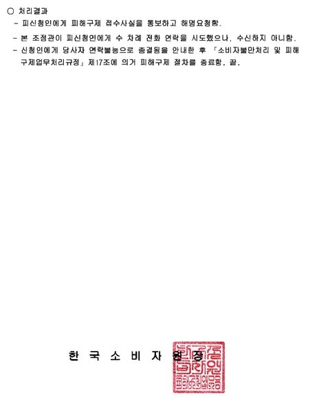 21.12.17 소보원에서 사실조사로 방문한다고 했음.