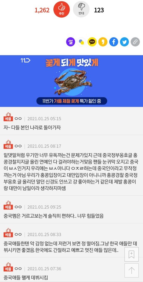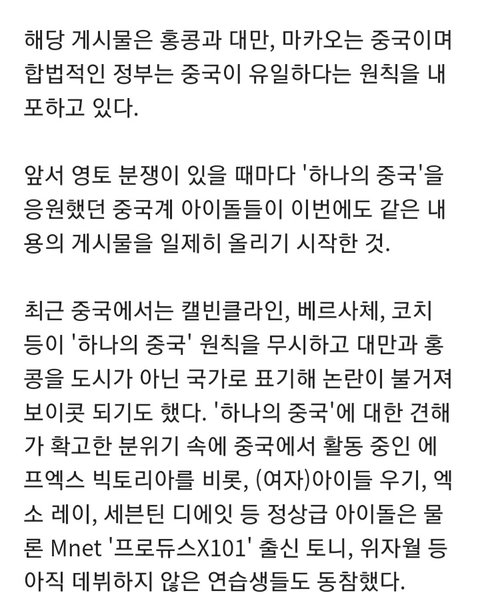 하나의 중국 지지글을 올린적이 없어?