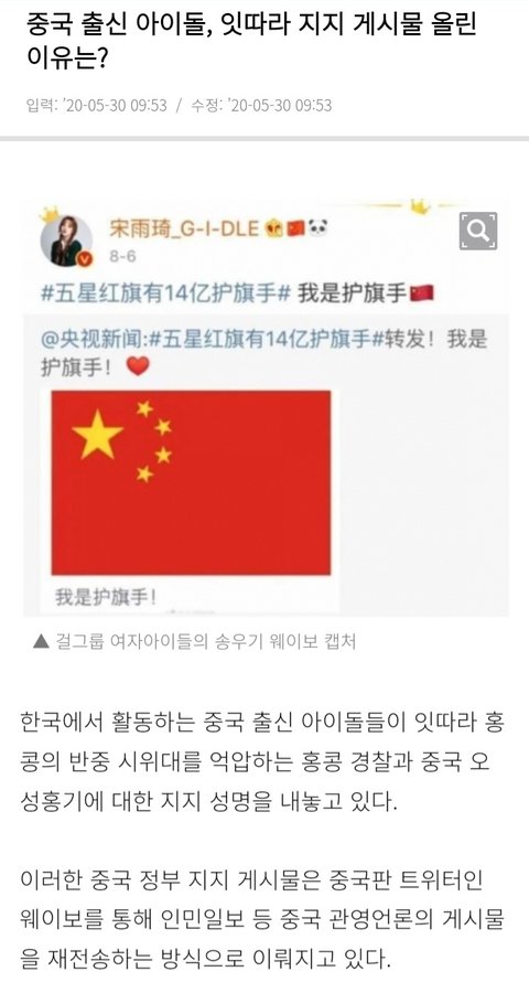 오성홍기 수호? 국기 훼손하지 말자는 내용이라고?