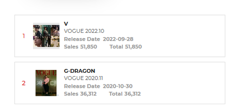 역대 케타 잡지 판매량 1,2위가 뷔랑 지디임
