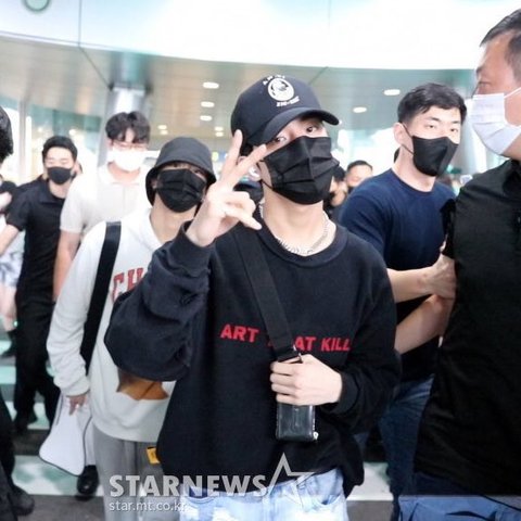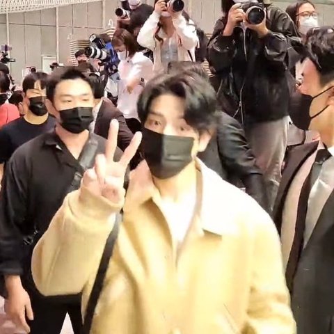 공항 소리 지르고 난리 났는데 이랑곳하지 않고 브이 날려줌 하 진짜 왤케 웃기지