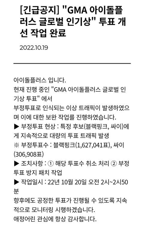 아돌플 인기상 3위팀 바뀜 ft.부정투표