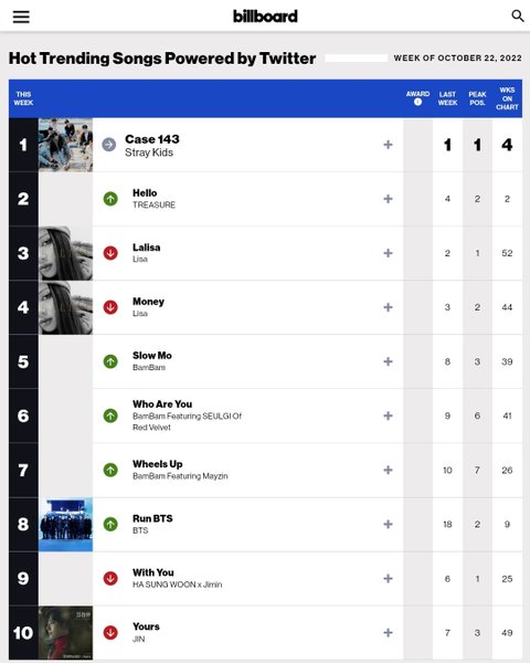 2022년 10월 22일 자 빌보드 핫 트렌딩 송즈 주간 차트