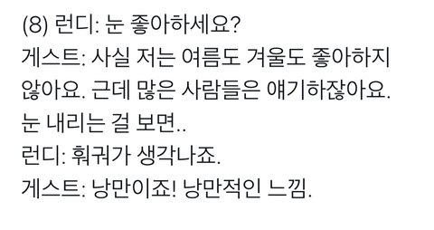 평소에 낭만적인 얘기 잘 하면서 가끔씩 무맥락 훠궈 나오는 거 너무 귀엽고 웃김..ㅋㅋㅋㅋㅋ 훠궈 좋아하는지는 알고 있었는데 19살 때부터(혹은 그 전부터) 저 정도로 좋아한 줄 몰랐네 사랑이구나...