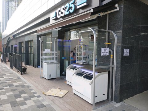 옆가게를 이렇게 막아버렸습니다.이렇게 큰걸 설치하고 옆가게 문도 안보입니다.대기업의 폭력이죠.