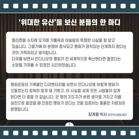 민다나오 평화 다큐, "위대한 유산" 전국 64곳 상영