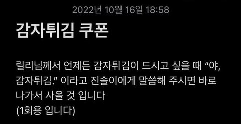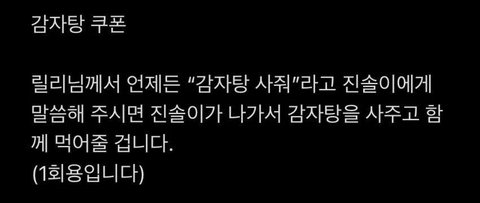 "릴리님께서 감자탕 사줘라고 진솔이에게 말씀해주시면