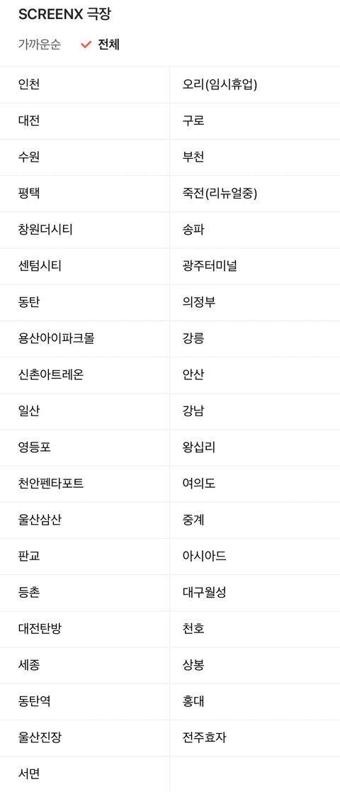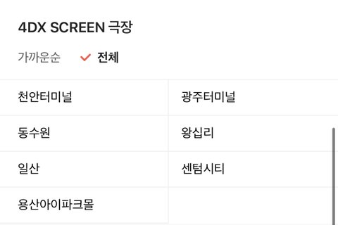 스크린엑스랑 포디엑스보다 그거 둘 합친게 젤 개꿀같은데 7개밖에 없네