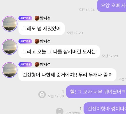와 오늘 지성이 모자 런쥔이가 준거래