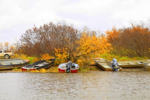 Kuskokwim River의 부둣가에도 이제는 가을 단풍으로 짙게 황금색으로