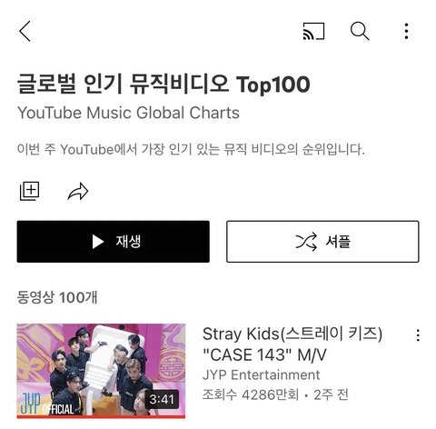 얼마전에 나온 케이스143 뮤비도 한국에선 인급동 한 2일인가? 오르고 나머지는 그냥 인기있는 뮤비 순위 중간 언저리만 돌더니 오늘 타돌 볼라고 유튭 보다가 우연히 떠서 보니까 전세계 인기 뮤비 일위네..? 워낙 체감 안돼서 몰랐는데 신기하다 ㅋㅋ