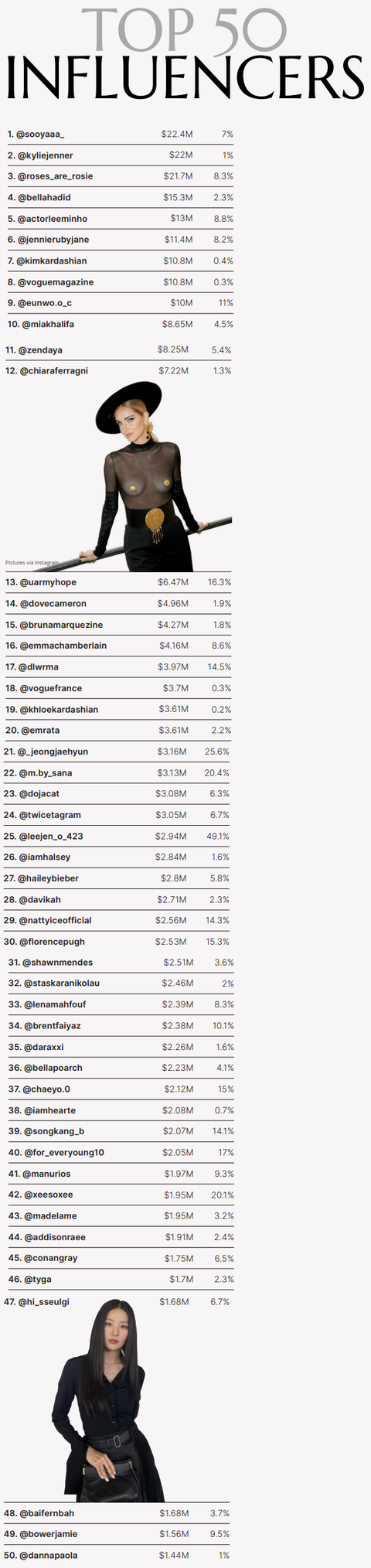 이번 세계 4대 패션위크에 참여한 앰버서더 영향력 순위