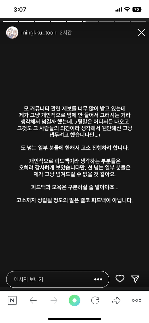 얘들아 밍꾸 작가 고소한대 조심하셈