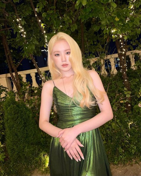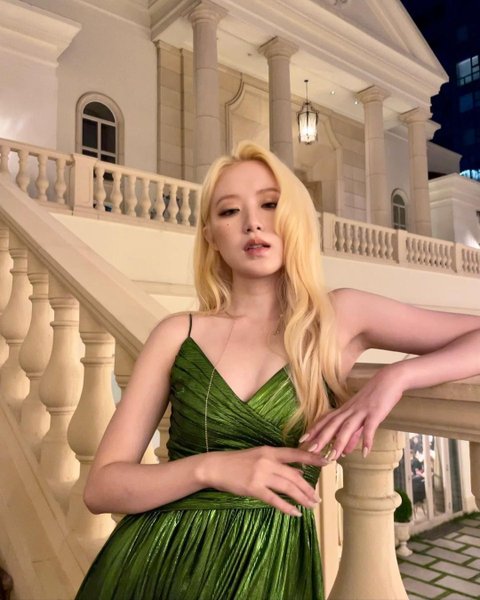 슈화 금발에 초록 드레스 미쳤다