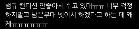 투바투 방콕콘 도중에 범규 컨디션 확 나빠져서 중간에 무대에서 빠지게 됨