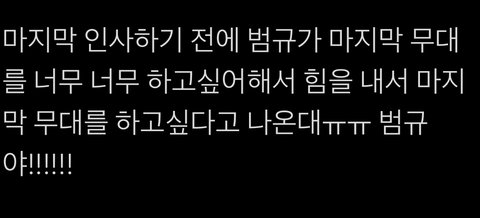 그러다가 범규 아픈 와중에 팬들 보러 마지막 앵콜 때 나오고