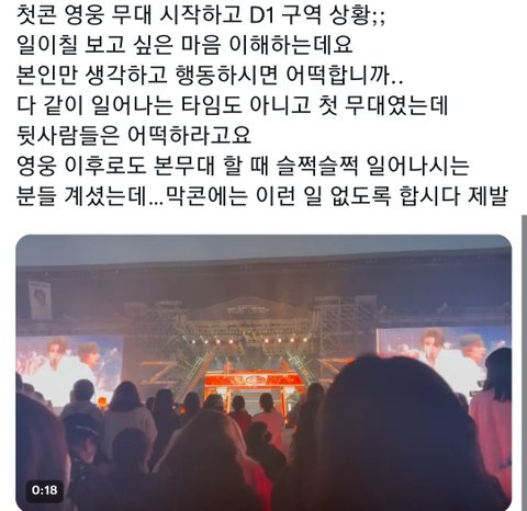 빠순이들 원래 저러냐? 뒤에서 야유하는데도 다 씹고 바로 뒷사람이 툭 치니까 그제서야 앉고 어떤사람은 걍 계속 서있어;;;;;