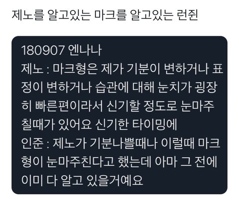 서로 기분 캐치해주고 그러는 거 쉽지 않잖아 그리고 나도 드림 보면서 마크는 드림애들 관찰을 잘 하고 진짜 다 알고 있는 것 같아서 놀랄 때가 많았는데 애들도 느끼고 있었다는 거 너무 신기해 마크가 애들보고 나는 이제 너네에 대해서 이해 안 되는 건 없는 거 같아라고 했던 말 진짜 백번공감