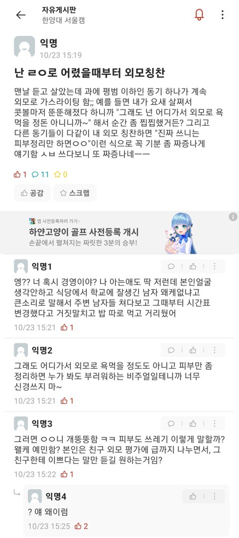 그와중에 댓글 여초식 ㅇㅈㄹ하는거 개웃기네 본문에서 여자인지 남자인지 아무 언급도 없는데