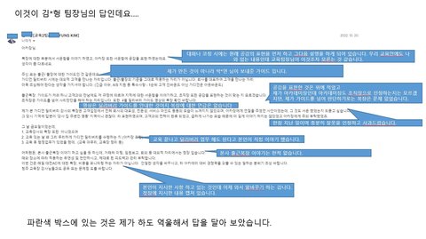김*형 팀장님께는 보고를 했는데 돌아온 답변이 뭔줄 아십니까?