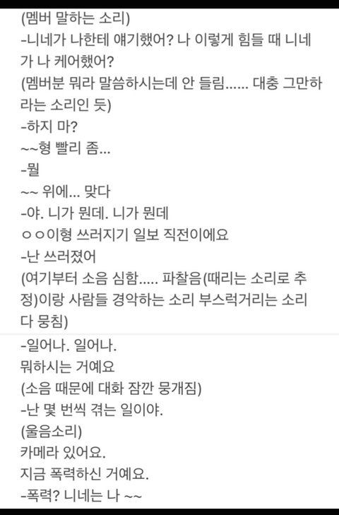 ㅁㅊ... 팬들 다 있는데서 저렇게 당당하게 때릴정도면 평소엔 더 심했을거 같은데 톡선올리자 심하네