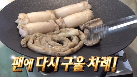 초벌 구이 마친 곱창을 팬에 다시 굽고