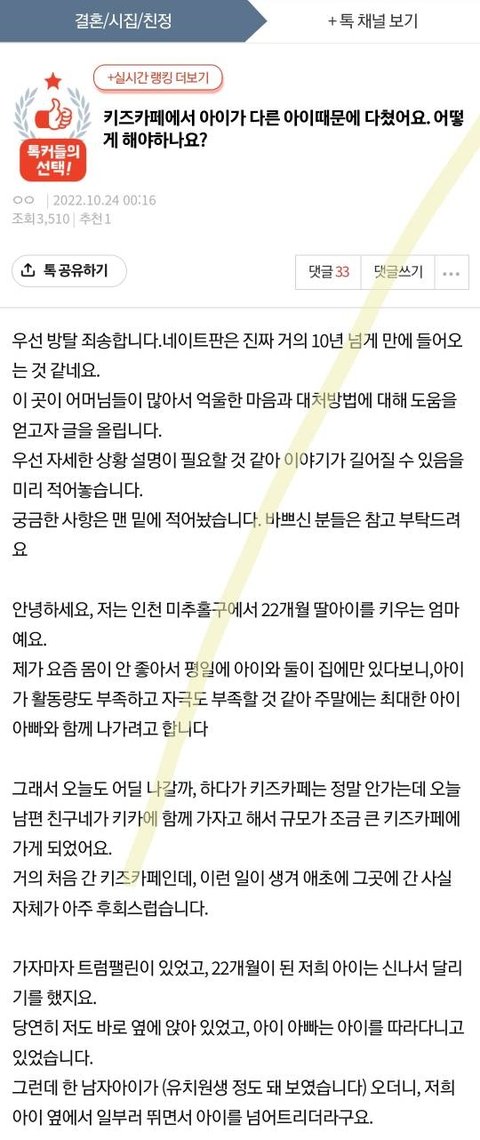 키즈카페에서 아이가 다른아이때문에 다쳤어요.