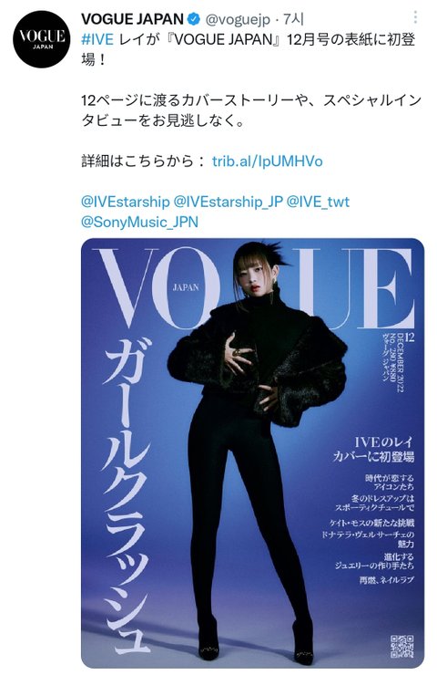 아이브 레이 케이팝 아이돌 두 번째 보그 재팬 표지모델...첫번째 리사