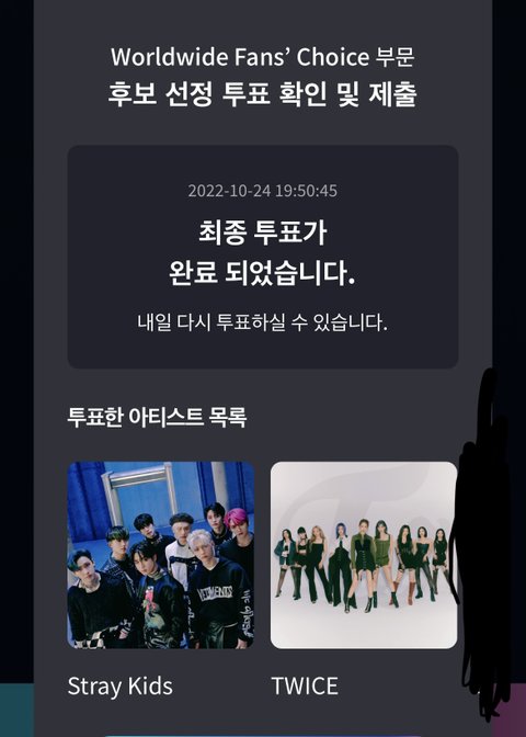 나 월와드팬초이스 먼저 투표 했는데 부문 투표가 안되네