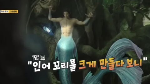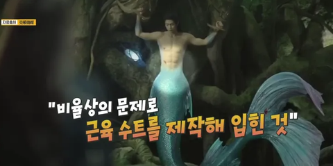 그가 몸은 좋지만, 인어 꼬리와의 비율을 맞추기 위해서
