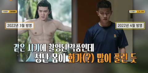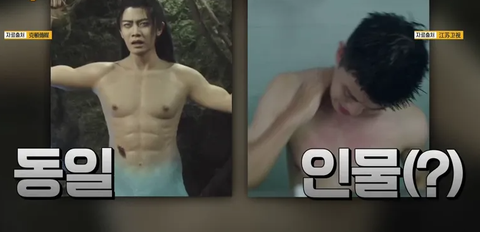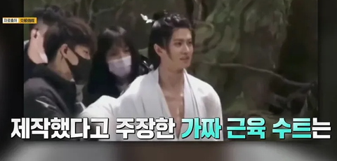 저 '가짜 근육 슈트'를 입고 촬영을 한 것이 발각되고 마는데...